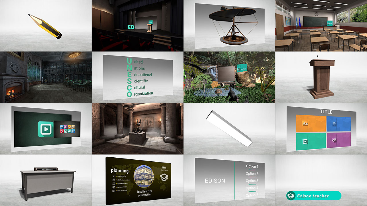 UE Visual 4KPro带有一个预定义模板、场景、家具、指针、屏幕和其他对象的库来填充场景,可以免费下载。