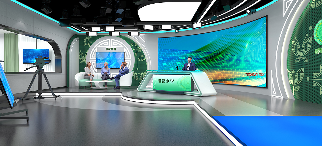 校园电视台由4K虚拟演播室系统、视频采集系统、非线性编辑系统、流媒体系统、现场监看、音频系统、LED灯光系统、蓝箱八大部分组成,是供学校自行拍摄、制作各种电视节目录像,如领导讲话、优秀示范课、教师访谈录、小型文艺节目、新闻节目等,并具有现场直播、录播、转播、转录等多种功能。